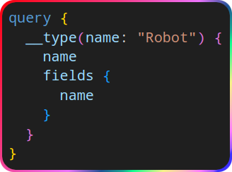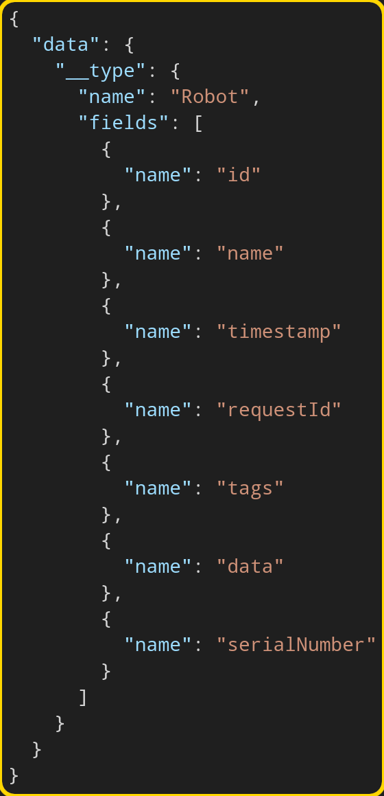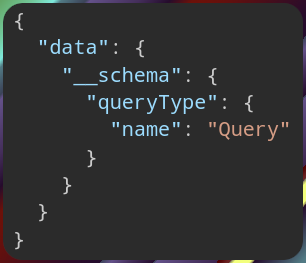 The response in JSON format look like this. The entrypoint of available queries which is usually called Query.